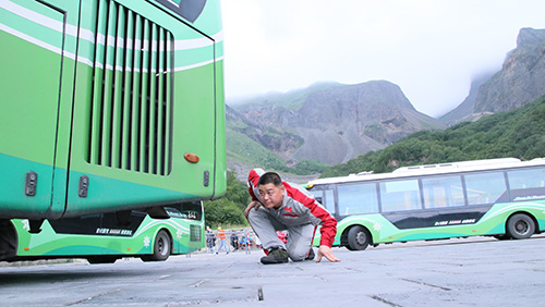 清晨,一縷陽光照在山門調(diào)度室前,穿著紅色工作服的檢修員正在認(rèn)真進(jìn)行每天的例行檢查,“三崗?fù)瑱z”是長白山北景區(qū)山門開放前,一輛一輛車的排查隱患,一輛車一輛嚴(yán)格檢驗……他們就是活躍在長白山旅游股份有限公司北景區(qū)的一支特殊的隊伍,詮釋著“工匠精神”的檢修部維修人員。