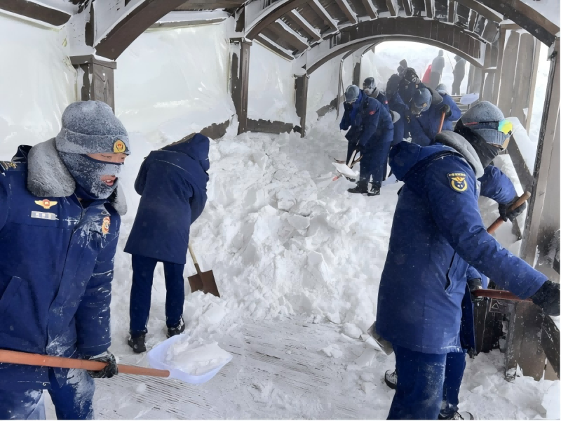 當(dāng)各個(gè)責(zé)任區(qū)全線(xiàn)貫通,候車(chē)回廊、登山臺(tái)階顯露出真容,兩側(cè)近2米高的雪墻和那早已被汗水浸濕又凍結(jié)成冰的棉襖,已然成為長(zhǎng)白山西南景區(qū)運(yùn)營(yíng)黨支部最鮮活的黨建成績(jī)單。