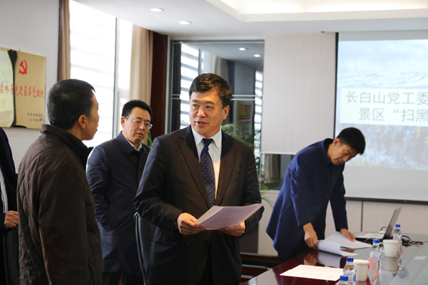 2019年3月31日上午,長(zhǎng)白山管委會(huì)紀(jì)檢監(jiān)察工委張廣輝書(shū)記一行,長(zhǎng)白山景區(qū)開(kāi)展調(diào)研掃黑除惡工作,并與公司掃黑除惡相關(guān)工作人員進(jìn)行座談。公司分管掃黑除惡工作的高管和各部門(mén)負(fù)責(zé)掃黑除惡的中層、主管16人參加調(diào)研。公司紀(jì)委書(shū)記紀(jì)景臣、副總經(jīng)理孫青春、黨群部部長(zhǎng)張光輝對(duì)開(kāi)展掃黑除惡相關(guān)工作進(jìn)行了匯報(bào)。